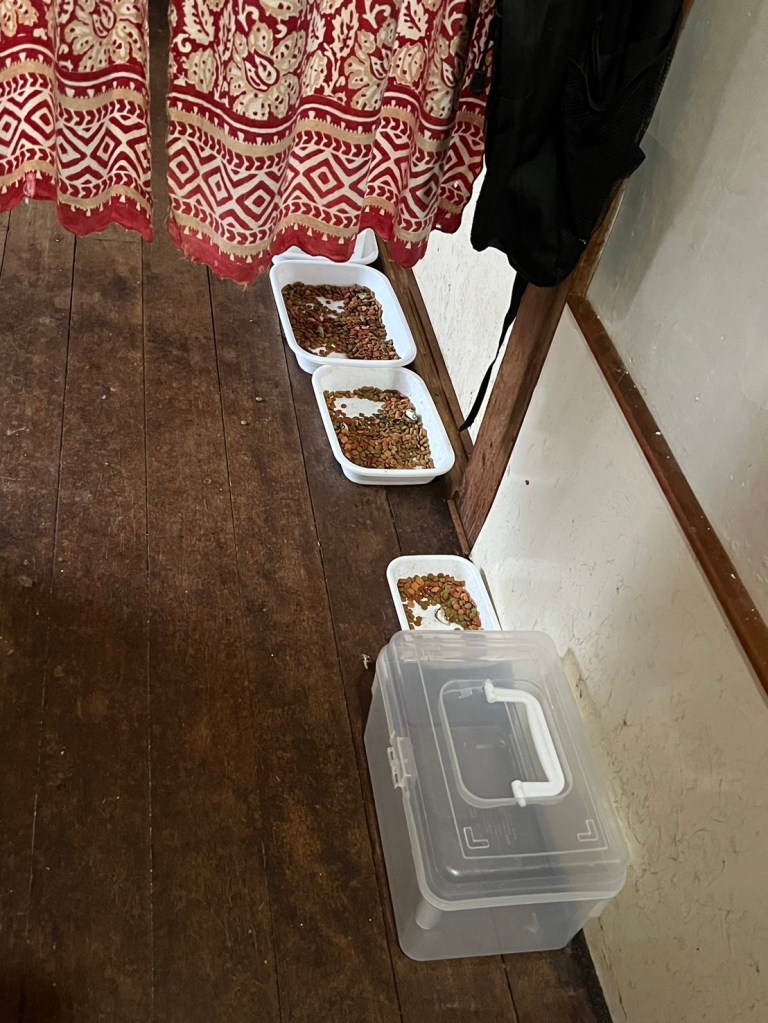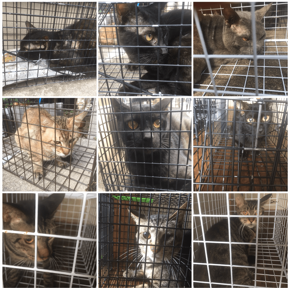 15匹のうち、1匹が脱走しており、屋根にいたため、その子は屋根に捕獲器を仕掛けて捕獲しました。