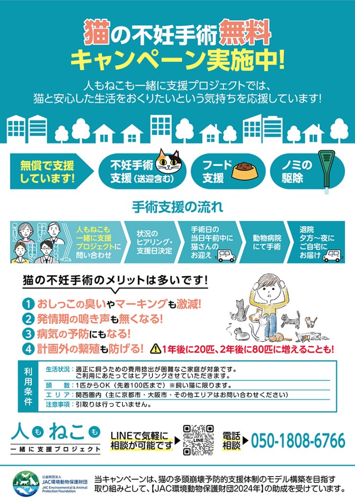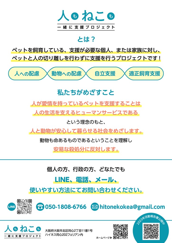 豊中市内にて、「高齢者の方が猫の多頭飼育崩壊をおこしている。支援してもらえないか。飼い主さんはケータイを持っていない為、代理で問い合わせました。」と飼い主さんのご近所の方から相談のメールがありました。