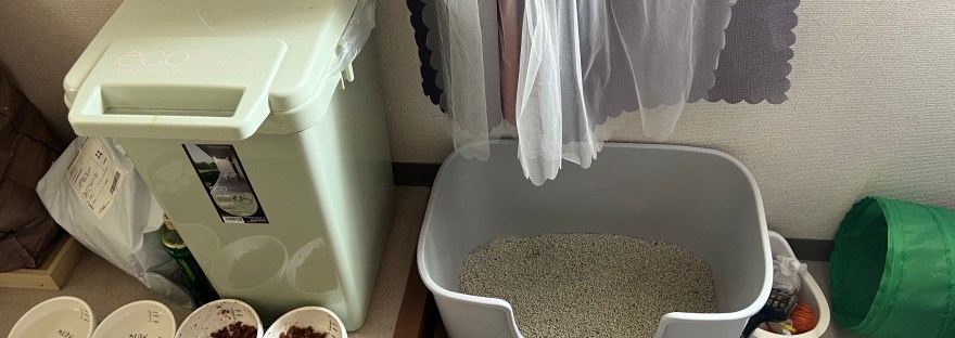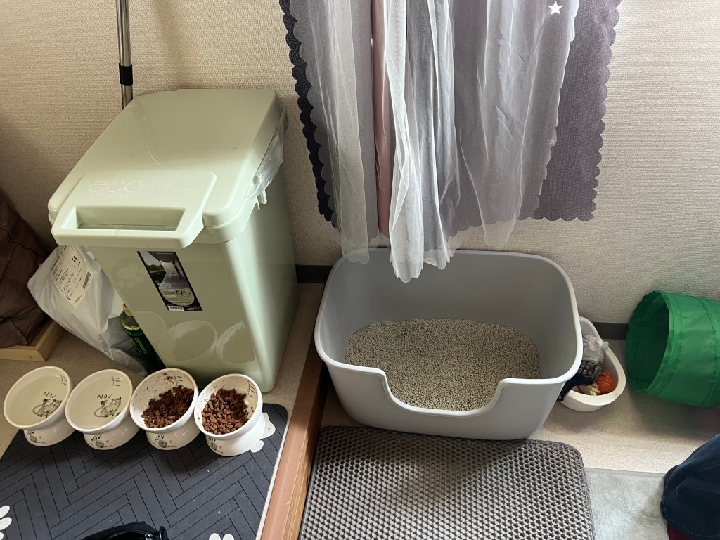 授乳中の母猫は来月末に手術を実施する予定で相談し、母猫用に寄付でいただいたロイヤルカナンの子育て中の母猫用のご飯と、他の成猫用のご飯、尿の臭いけしスプレーを差し入れに行きました。